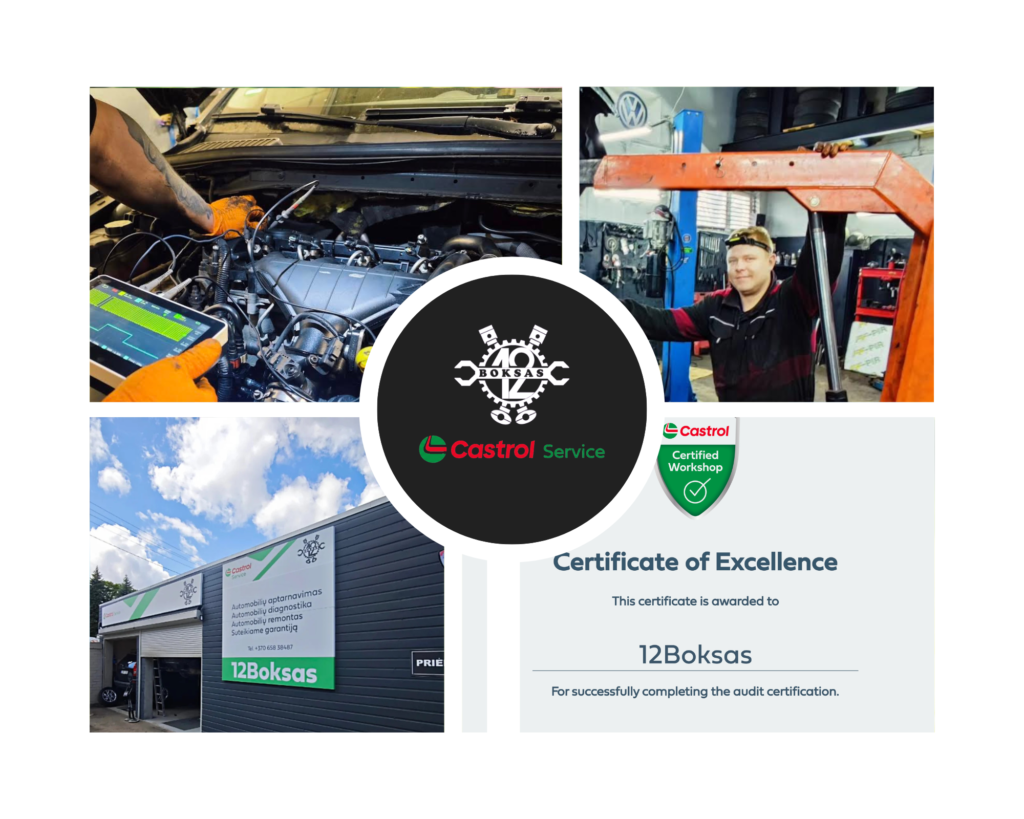Esame oficialus Castrol atstovas Vilniuje, sujungiantis aukščiausios klasės aptarnavimą su ilgamete patirtimi. Mūsų komanda — tai sertifikuoti profesionalai, kurie rūpinasi Jūsų automobiliu taip, lyg jis būtų jų pačių.